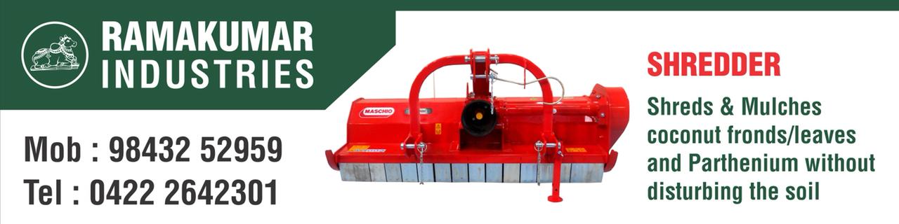 Mulches and shreds coconut fronds, weeds, cover crops, sugarcane, tapioca trash, etc